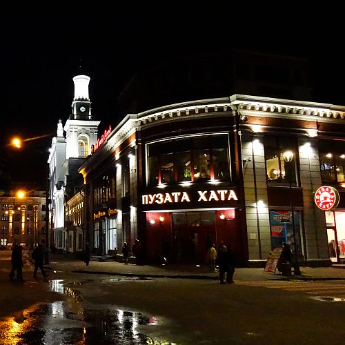 War spät gestern, als ich erwache, hämmert es in meinem Kopf. Ich schrecke hoch. Wo bin ich? Ah, in meinem Zimmer in Charkiw. Und es hämmert gar nicht in meinem Kopf, es ist das Zimmermädchen, welches das Frühstück bringt. Unfröhlich drückt sie mir ein Tablett in die Hand. Zwei kleine gefüllte Teigtaschen, einen Joghurt, eine winzige Schokowaffel und einen Apfel- das ist besser als nichts. Ich setze Teewasser auf und springe in die Dusche, merke, dass die letzten Tage ihren Tribut fordern. Aber heute ist Matchday, die Eintracht spielt. Also raus in den Tag.