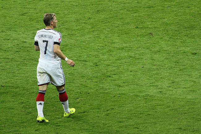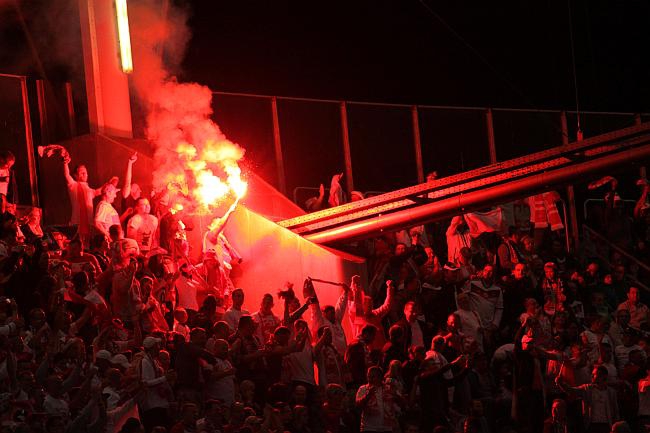 In Halbzeit zwei weiterhin munterer Fußball, auf dem Videowürfel dann auch die Einblendung: Das UEFA-Reglement erlaubt keine Live-Übertragung im Stadion. Okay, dann gucken wir halt auf den Platz. Beide Kurven forderten Lukas Podolski. Spät fiel dann das 3:1, wieder Götze, Buffdabuffdabuff – SIEG. Einwechslung Podolski. Abpfiff, Abmarsch.