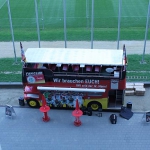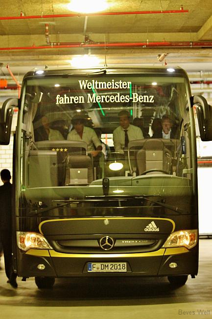 DIE MANNSCHAFT steht breit auf dem Bus der DFB-Elf. Ein künstlich kreierter Slogan, ebenso künstlich wie das Auftreten des Fanmobils des Fanclub der Mannschaft. Alles durchdekliniert toll. Tolltolltoll. Aber was soll ich mich aufregen, wir haben die Regenwalze ins Stadion geschleppt, jede Menge Polen hatten das Stadion geentert und während des Spiels ordentlich supportet, beim Tor durch Lewandowski sogar ein bisschen gefackelt. Die Deutschen? Buffdabuffdabuff – SIEG. Mehr geht nicht.