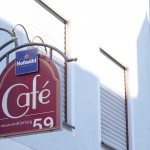 Wir parkten vor den Toren der Altstadt und marschierten in die Fußgängerzone, beschaulich ging es zu, trotz geöffneter Geschäfte an einem Feiertag – und wir suchten eine einheimische Lokalität, die wir bald fanden. Nebenan das Café 59. Einige Eintrachtler hockten bei einem Bierchen draußen vorm Wirtshaus, darunter auch Werner, der wie so oft mit dem Fahrrad angereist war. Seit Mittwoch unterwegs, war er heute morgen angekommen – zurück wollte er mit den Sossenheimern, es wird sicher geklappt haben.