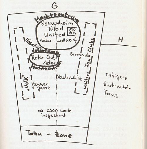 Diese Mitglieder haben ihre Fanclubs schön dort hineingeschrieben – war ja auch legitim. Dafür fehlten in der Skizze damals wichtige EFCs wie Bockenheim, City, Forest, Rangers usw. völlig.