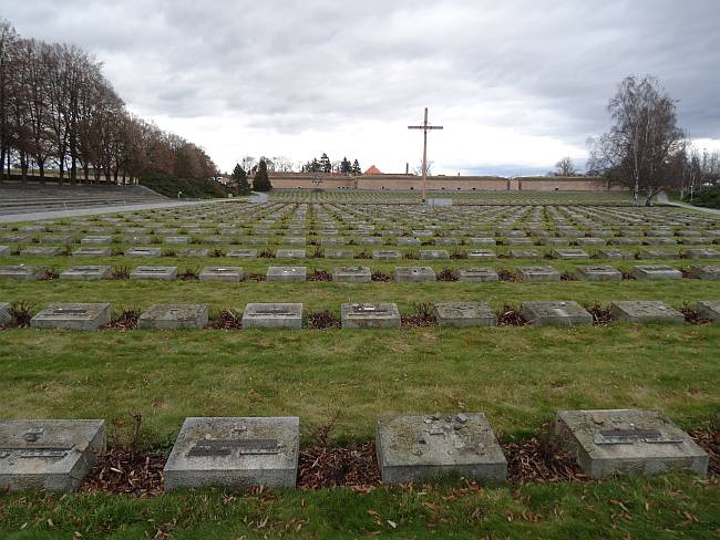 Bevor ich die eigentliche Festung erreiche, erstreckt sich ein großer Friedhof vor den Mauern. Markant fällt mir ein wuchtiges Holzkreuz ins Auge, dazwischen endlose Reihen von Grabplatten, auf manchen liegen Steine, dem jüdischen Symbol der Trauer. Erst am Rande der Festungsmauer sehe ich einen Davidsstern, der zunächst kaum wahrnehmbar scheint. Wie kann das sein? Seit ich hier bin, erlebe ich ein Gefühl der Verwirrung, eine Anhäufung von Fragen – jedoch kaum Antworten. Weshalb ist das christliche Kreuz so präsent? Weshalb sind hier so wenige Menschen? Weshalb gibt es so wenig Orientierungspunkte? Weshalb bin ich hier an diesem so traurigen und geschichtsträchtigen Ort relativ alleine gelassen? Weshalb erklärt sich hier so wenig?
