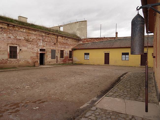 Und durch die Führung erfahre ich endlich konkrete Hintergründe. Dass der Kasernenbereich, den ich zuvor besucht hatte, nahezu ausschließlich als jüdisches Ghetto, die Kleine Festung aber vorwiegend als Gefängnis für politische Gefangene diente. Viele der Häftlinge waren tschechische Widerstandskämpfer. Während also die allermeisten Juden zuvorderst von Theresienstadt in die Vernichtungslager deportiert wurden, so sie die Zeit im Ghetto überleben sollten, so wanderten nur verhältnismäßig wenige von ihnen in die kleine Festung. Dies erklärt auch das christliche Kreuz auf dem Friedhof – viele der Häftlinge hier waren christlichen Glaubens. Die Geschichte der Kleinen Festung aber als Gefängnis begann nicht mit den Nazis. Schon in der K&K Monarchie darbten hier die Gefangenen. Für die Nazis aber bot die Festung ideale Bedingungen im Rahmen der Vernichtungsorgie. Während der NS Diktatur waren hier über 30.000 Menschen eingesperrt. Ca. 8.000 von ihnen wurden in die Vernichtungslager deportiert, knapp 3.000 starben an Entkräftung, Krankheit, Folter, Mord und Hinrichtung.