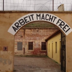Die ankommenden Gefangenen wurden registriert und mit Gefangenenkleidung versehen. Bevor sie in die Räume verteilt wurden, mussten sie im Hof verharren. Und starrten auf das Tor in den Appellhof. Der Lagerkommandant hatte in großen Lettern den Schriftzug „Arbeit macht frei“ über das Tor anbringen lassen.