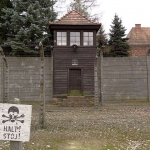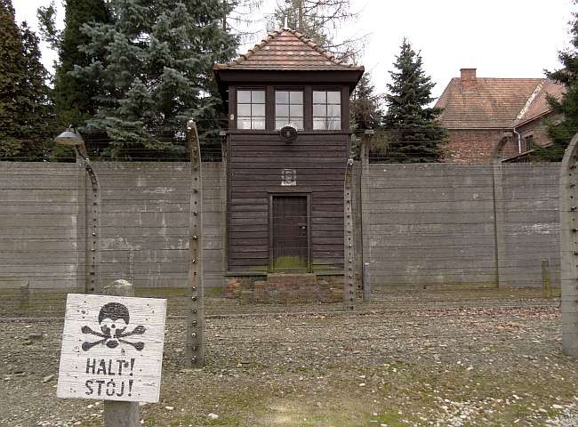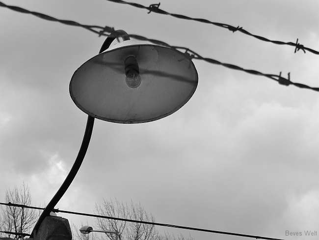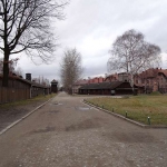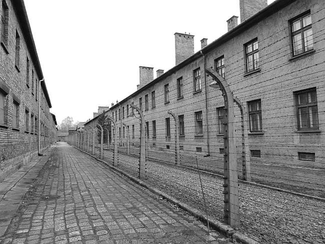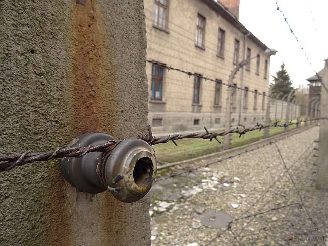Das Stammlager in Auschwitz ist nicht sonderlich groß, in wenigen Minuten hat man es durchschritten, die wenigen Wege verlaufen meist kerzengerade. Steinbaracke steht neben Steinbaracke. Das Gelände ist doppelt umzäunt, der Stacheldraht an steinernen Pfosten verschraubt, einst unter Strom stehend, dazwischen die Wachtürme, dazwischen die Lampen. Bis zu 20.000 Menschen vegetierten hier gleichzeitig.