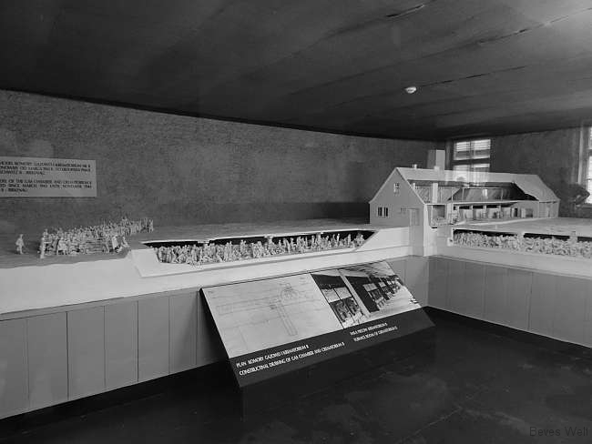 Der Tod kam in den Gaskammern durch Zyklon B. Und Zyklon B kam aus Frankfurt. Von der Deutschen Schädlingsbekämpfung, kurz Degesch, die Büchse für fünf Mark. 210 kg für 1050 Mark. Die Nazis wussten genau, wieviel Gramm sie pro Jude brauchten. Sie hatten es ausprobiert. Ich stehe vor einer Vitrine, in der sich leere Büchsen stapeln, in einer kleinen Vitrine liegen die Körnchen. Ich stehe vor einem Modell einer Gaskammer. Es verdeutlicht den Werdegang der Vernichtung. Schon an der Rampe wurden die wenigen Habseligkeiten beschlagnahmt. Durch eine Treppe gelangten die Todgeweihten dann in einen langezogenen unterirdischen Raum. Dort mussten sie sich in Massen nackt ausziehen. Die Kleidung und alles was sie noch bei sich hatten, wurde in großen Effektenlagern gesammelt. Diese hießen Kanada. Kanada war ein reiches Land. Nachdem die nackten Menschen dicht an dicht standen, wurde ihnen gesagt, dass es nun zum Duschen ginge. Und sie gingen in die Duschen. Unterirdisch. Die Räume wurden verschlossen. Zyklon B von oben wohldossiert hinein geschüttet. Nach sieben Minuten waren alle tot. Nach einer kurzen Feststellung des Todes durch den verantwortlichen Lagerarzt (Ein Blick durch ein Guckloch reichte) musste das aus jüdischen Häftlingen bestehende Sonderkommando die Leichen rasieren und auf Goldzähne untersuchen. Das Haar wurde gesammelt – und verkauft, es ließen sich daraus prima Filzdecken spinnen. Das Kilo Haar zu Fünfzig Pfennig. Dann ging es in Massen ins Krematorium. Sie konnten gleichzeitig mehr Menschen vergasen als verbrennen.