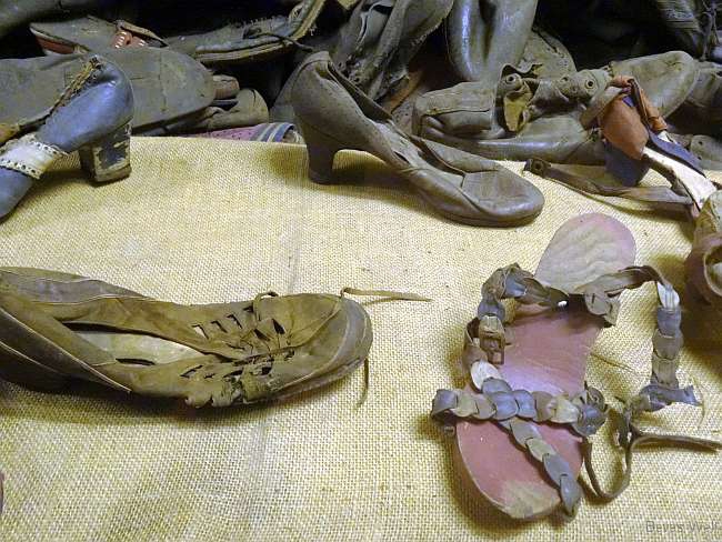 In großen Vitrinen werden Tausende von Brillen ausgestellt, Tausende von Koffern, Tausende von Bürsten, Tausende von Töpfen, Tausende Gehhilfen von Krüppeln, von unwertem Leben, wie es die Nazis formulierten. Jeder einzelne dieser Gegenstände erzählt eine Geschichte. Jeder einzelne wurde gestohlen. In einer anderen riesigen Vitrine sehen wir Tausende von Schuhen. Ausgelatschte Galoschen, Stiefel, einer über dem nächsten. Ich sehe einen Frauenschuh, hölzerne Sohle, hoher Absatz, rote und blaue geflochtene Riemchen. Er spricht zu mir. Wer hat ihn getragen? Eine lebensfrohe Frau, er brachte ihre hübsche Füße an einem lauen Sommerabend zur Geltung, ein wenig kokett. Vielleicht hat sich der Schuh zum Tanz gedreht. Vielleicht hast du einem Mann im Vorbeigehen zugezwinkert. Runter. Ausziehen. Duschen. Haare ab. Goldzahn raus. Feuer.