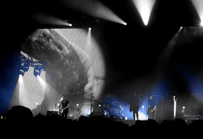 Zu Without yo I’m nothing wird David Bowie eingeblendet, er war in den Anfangstagen ein großer Förderer der Band, nun ist er tot. Wie Cohen. Oder Lemmy. Der an diesem Abend jedoch keine Rolle spielt. Mit der Zeit wird es nach der melancholische Session wieder rockiger. Jetzt erklärt uns Molko, dass es anlässlich des 20. Geburtstages ans Feiern geht, ans Tanzen. Er fordert die hinteren Reihen auf, eben jenes zu tun. Und jetzt schwebt die Halle, Special K., Slave to wage, Song to say good bye, The Bitter end und nach einer kleinen Pause Nancy Boy, Teenage Angst, Infra Red. Nach einer weiteren Pause beschließen sie das Konzert mit dem Kate Bush Cover Runnin‘ up that hill. Es wird, wie schon zuvor das letzte Lied des Abends, großer Applaus, Abgang, Licht.