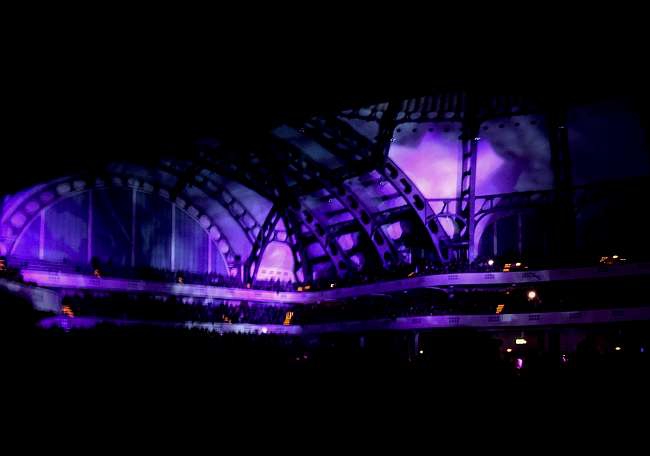 Die Halle ist gut gefüllt, die Vorband schon vorbei, als wir den Innenraum betreten. Irgendwen kennt man immer, ich blicke nach oben, auf das Stahlgerüst, die Kuppel. 1909 wurde die Festhalle eröffnet, irgend jemand hat damals dort oben gesessen und die Einzelteile zusammen geschraubt. Oder genietet. Vielleicht ist er im ersten Weltkrieg gefallen, ich spüre dessen Geist und ahne die Geschichte der Halle. Hier war ein Kriegslazarett, von hier wurden Juden in die Lager geschickt, Sechstagerennen, Konzerte, Pferde.