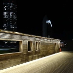 Das Licht ist schön, der Abendhimmel blau, ein guter Tag zum Fotografieren, so ich ein Stativ dabei hätte. Die Wucht der Bauten, dazwischen der Mensch, so klein. Doch das Leben reduziert sich hier auf das Arbeitsleben oder das Konsumentenleben, hier wächst nichts unbeobachtet, ob hier je ein Kind gespielt hat, ist nicht überliefert. Ich bin kein Freund dieser Einkaufszentren, der Malls. Meist gibt es hier Dinge, die ich nicht brauche oder aber zu teuer sind, die Atmosphäre unter Neonlicht lädt nicht zum Verweilen ein. Ich esse ein quietschbuntes Eis und laufe durch die Ebenen, hier gibt es viel und gleichermaßen wenig. Manch Verkäufer steht alleine in seinem Laden, tippt auf dem Handy, ich betrachte die Schaufenster, Business, steril, auch die Essensbuden laden nicht wirklich ein. Als Pia kommt, werfen wir einen Blick in den Saturn, wir brauchen noch Mini DVs, eine aussterbende Technik, eben noch State of the Art. Preise für Speicherkarten und Kleinkram werden digital angezeigt. Ich komme mir verarscht vor, wie ich mir an Tankstellen verarscht vorkomme, wenn binnen eines Tages die Preise für Sprit um über zwanzig Cent variieren. Die Strategie, das Maximale aus deinen Taschen zu ziehen, die Preisentwicklung nicht nachvollziehbar. Der Verbraucher, ein Narr, am Nasenring durch die Manege gezogen.