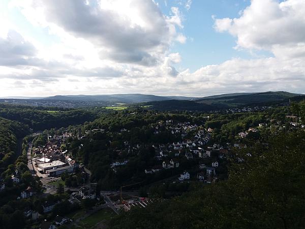 Weiter geht es über Brechen, Erbach und Bad Camberg Richtung Würges. Die örtlichen Autohändler präsentieren immer wieder Oldtimer, wer einen B-Kadett oder A-Rekord sucht, könnte hier fündig werden. Wieder hat es manch Autofahrer hinter uns recht eilig, wir aber halten die Spur und tuckern über Heftrich und Ehlhalten über die Dörfer. Fast an jedem Ortseingang künden Schilder von einer kommenden oder zurück liegenden Kerb, wir könnten Gladiolen oder Sonnenblumen schneiden oder uns mit Kürbissen versorgen. Das machen wir aber nicht, wir rollen stattdessen nach Eppstein und von dort hoch zum Kaisertempel mit fantastischem Blick über Eppstein und die umliegenden Hügel, die Sonne glänzt, die Solarzellen auf den Dächern spiegeln die Strahlen glänzend zurück.