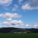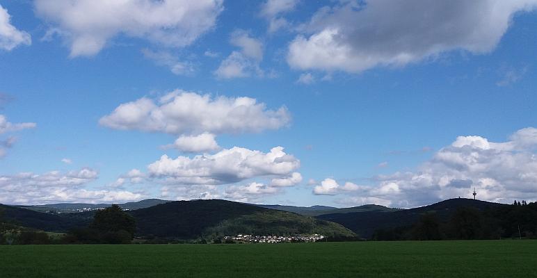 Wüstems, Reichenbach, Riedelbach heißen die nächsten Orte, auf den Hügeln drehen sich mächtige Windräder. Von Riedelbach aus geht es in den Wald, neben einem alten Sportplatz inmitten von Bäumen befindet sich ein kleiner Segelflugplatz, wir rasten erstmals. Bauernbrot, Presskopp, Leberwurst und Äbbelwoi. Zwei Menschen kommen vorbei und entschuldigen sich, dass sie auf unserem Segelflugplatz Drachen haben steigen lassen. Wir nicken wohlwollend und kauen weiter. Dann geht es durchs Grün am Eichelbacher Hof vorbei Richtung Hasselbach, weiter nach Haintchen und Münster. Die Eintracht führt derweil in Gladbach mit 1:0.