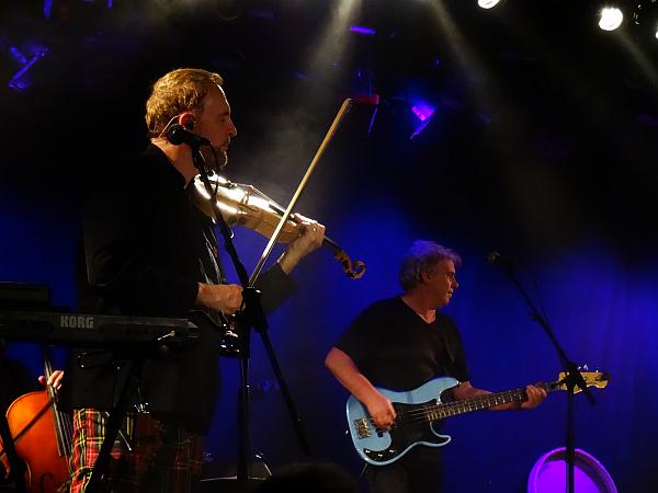 Sie spielen im ersten Set die komplette „Holy Bandits“ von 1993, Telfer an der Geige in Schottenkarohosen mit unverkennbarem schottischem Akzent bei den wenigen aber klugen Ansagen, die er macht. Der Hinweis auf den Merchandising Stand mit den Worten „expensive Nonsens“. Die Mimik von John Jones hat in den Jahren gelitten – so es denn eine gibt, aber der Gesang ist klar wie stets – Andy Alan Prosser an der Gitarre hat sichtlich Spaß,. Adrian Oxaal am Cello bleibt meist im Hintergrund, ebenso wie am Bass Al Scott. Den Jungen (Pete Flood) am Schlagzeug kenne ich nicht. Und so reisen wir durch die Songs, die noch immer mitreißend klingen, von mir aus hätten sie das Album zwar nicht komplett durchspielen müssen, aber für viele ist es wohl DAS Album der Band schlechthin, das Publikum freut’s und zieht mächtig mit. Emotionaler Höhepunkt vielleicht A fire is burning, aber textsicher ist der Saal bei jedem Song.