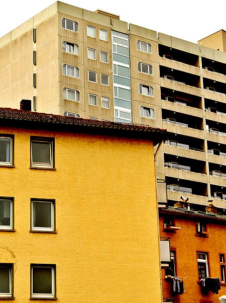 Auf dem Rückweg über Sachsenhausen passieren wir das Willemer-Häuschen, an Goethe kommst du hier nicht vorbei, weiter unten ist ein gehobenes Bordell. Zwischen Häuschen und Henninger Turm spielte eine neuere Episode der Stadtgeschichte. Die von Bruno Schubert, der nach dem II. Weltkrieg Henninger erwarb – und 1980 wieder veräußerte. Als Schubert 2010 starb, sollte seine blutjunge Witwe das Vermögen erben, der Boulevard überschlug sich. Zu seinem Besitz gehörte auch die denkmalgeschützte Villa am Wendelsweg. Nachdem der letzte Besitzer von Henninger, Dietmar Hopp, die Markenrechte verhökert hatte, ging es an den Umbau des gesamten Geländes – es entstand obiges Wohngelände der gehobenen Klasse. Und die Stadt Frankfurt pfiff zugunsten der Investoren auf den Denkmalschutz.