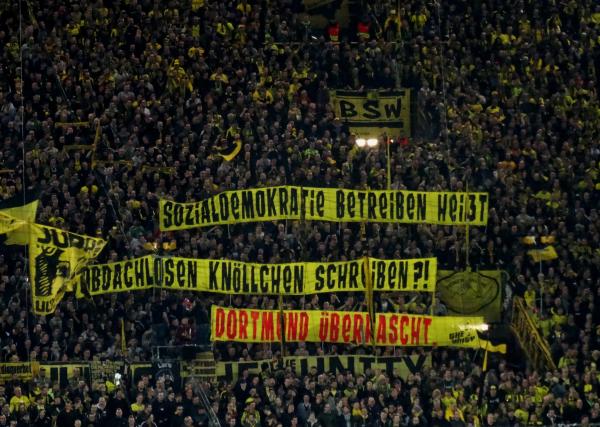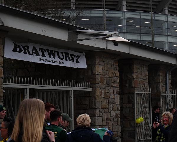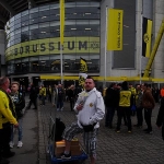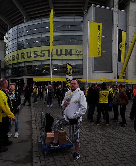 Die Fans strömten in Scharen, hell leuchteten das Borusseum und der Fanshop in den Tag, Bratwurst, Bier, Pfandflaschensammelstellen, und immer wieder ein Gude hier und Gude dort. Am Straßenrand lungerten ein paar Polizisten herum, alles recht unspektakulär, für etwas Aufregung sorgte nur die Ankunft der Ultras, der ein oder andere wurde recht unwirsch darauf hingewiesen, doch im Pulk zu bleiben – wobei ein paar Meter weiter ohnehin der Eingang war.