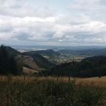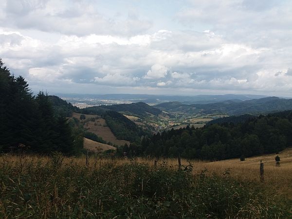 Ob des dräuenden Regens starten wir am Freitag auch unseren Ausflug ins Glottertal schon recht früh, wer wandert schon gerne durch strömendes Wasser? Und wer hat seine Speicherkarte vergessen? Kurz hinter dem Beginn des Glottertals biegt eine Landstraße ins Föhrental ab und endet bei einigen Höfen. Von dort führen Wanderrouten rund um das Tal, mit leichten Anstiegen, fantastischen Ausblicken über die Rheinebene bis hin zum Kandel, hinweg über Weiden, Grillplätzen auf der Höhe und Holzschleifwegen, die uns nach drei Stunden wieder Richtung Parkplatz führen. Wolkenverhangen der Schwarzwald. Kaum sitzen wir wieder im Auto, beginnt es zu tröpfeln, wir tuckern durchs Glottertal – dort, wo einst die Schwarzwaldklinik die Augen der bundesdeutschen Fernsehwelt in die vermeintliche Heimat von Doktor Brinkmann, Schwester Christa und Pfleger Mischa lockten. Sascha Hehn springt hier wahrscheinlich noch immer aus seinem weißen Golf Cabrio, dem sogenannten Erdbeerkörbchen und beeindruckt die Damenwelt.