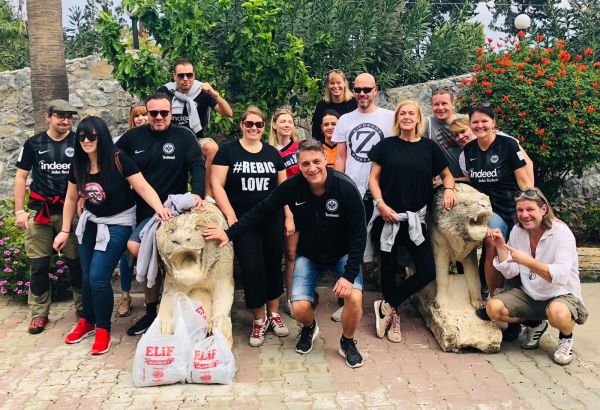 Alles begann mit einem Tweet von Basti_Red, der einen Pauschalurlaub anlässlich der Europapokaltour der Eintracht zum Spiel gegen Apollon Limassol in Nikosia gebucht hatte. Die Unterkunft lag in Nordzypern, also im türkischen Teil der Insel, eine Hotelanlage mit Pool, ein paar Schritte vom Meer entfernt. Das klang verlockend, aber wir waren gerade auf Korfu und hatten die Reise zum Auswärtsspiel in Rom im Dezember schon gebucht. Aber nach einigem hin und her entschieden wir uns doch dabei zu sein, irgendwie ist das Leben ja dann doch zu kurz, um auf europäische Auswärtsspiele der Eintracht zu verzichten. Mittlerweile hatten sich noch eine ganze Menge andere Eintrachtler dem Projekt „Reisegruppe Zypern“ angeschlossen – und aus der anfänglichen Idee, mit dem Taxi am Spieltag anzureisen, wurde am Ende ein 18er Bus, doch dazu später.
