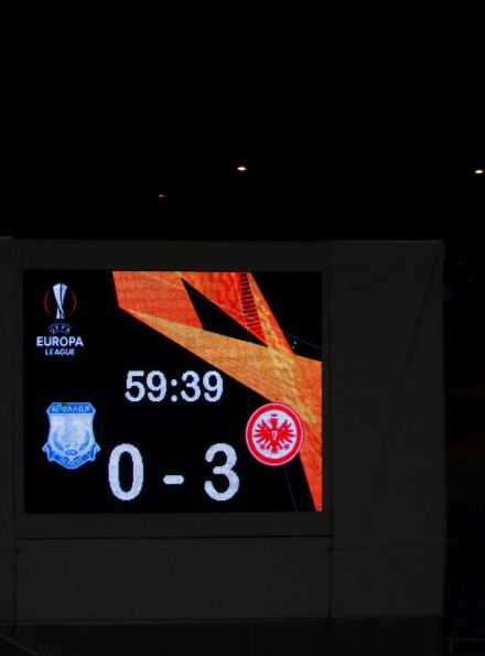 Dankenswerter Weise holte uns Heike ab, das herbstliche Frankfurt hatte uns wieder – und kaum waren wir zuhause, mussten wir schon wieder los. Mit Bum-kun und Du-ri Cha begrüßten wir hochwillkommene Gäste, Niko war auch schon wieder da und wir waren schwer erleichtert, dass wir unseren Auftritt reibungslos über die Bühne brachten. Die erste Halbzeit sahen wir noch im Stadion, aber wir waren genau so konfus, wie das dargebotene – und so packten wir in der Halbzeit unser Bündel, fuhren nach Hause und sahen noch im TV einen weiteren Sieg unserer Eintracht. Und kaum war das Spiel abgepfiffen, war auch unser Spiel vorbei. Noch beim Zähneputzen schlief ich ein. Europacup, Europacup im nächsten Jahr. Und viele Grüße an die Reisegruppe Zypern. Schön war’s.