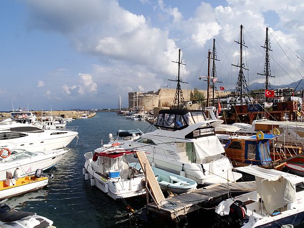 Der nächste Morgen brachte müde Helden. Nicht jeder schaffte es zum Frühstück und wir pendelten zwischen Pool und Meer und Supermarkt und Pool und Meer und Supermarkt. Erste Longdrinks wurden gegen Mittag gesichtet, sogar mit Alkohol, Stichwort Johanna: „Keine halben Sachen“ und so verplemperten wir hoch entspannt den Tag bei Sonnenstrahl und guter Sicht auf’s Meer und bequatschten Gott und die Welt und die Eintracht sowieso. Später wanderten wir zu einem Restaurant, blickten auf’s Wasser und futterten wie die Großen, bis wir die Nacht unter großem Gebabbel, Katzenfüttern und Gelächter am Pool ausklingen ließen. Für die ersten stand dann nur wenig später die Rückreise an, der Rest hatte noch mindestens einen weiteren Tag, den Ariane, Pia, Niko und ich noch für einen Ausflug nach Kyrenia (Girne) nutzten – nachdem ich noch einen Warmwasserpool entdeckt hatte und mich fröhlich auf einer Matratze liegend durchs Wasser treiben ließ, während es draußen in Strömen goss. In Kyrenia bejubelte ich später einen Auswärtssieg für Brighton & Hove, der gar keiner war, da Cardiff in blau spielte und in der letzten Sekunde traf, nicht wie ich dachte, die Seagulls. Mit vollgepackten Tüten ging’s ins Hotel, weiter zum Abendessen und zum Ausklang auf ein Abschiedsschöppchen ins Hotel. Während Basti und Kristian mit ihren Mädels noch ein paar Tage bleiben wollten, stand für die Reisegruppe Nordend mitten in der Nacht der Shuttle zum Flughafen bereit. Todmüde rollten wir zurück zum Flughafen, ließen das übliche Prodedere über uns ergehen, hockten auf viel zu engen Sitzen, schafften auch den Anschlussflug in Istanbul und schwebten zurück nach Frankfurt. Immer wieder fielen uns die Äuglein zu – doch auf uns wartete ja noch die Waldtribüne vor dem Schalkespiel, es war ja schon wieder Matchday.
