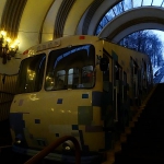 Draußen vor dem Terminal ein paar schnelle Züge an meiner neuen E-Cigarette genommen, dann die Suche nach dem Sky Shuttlebus mit der Nummer 322, an dem ich zunächst prompt vorbei laufe, da er tatsächlich nur ein paar Schritte entfernt vom Ausgang auf seine Gäste wartet. Das Gelände scheint weit übersichtlicher, als erwartet. Ich frage zur Sicherheit noch einmal beim Fahrer nach, ob es wirklich so läuft, wie ich es in Erfahrung bringen konnte, dieser bestätigt dies äußerst gelassen – und nach ein paar Minuten geht es schon los. Alle Sitzplätze sind belegt, ich schaue gedankenverworren aus dem Fenster. Nach wenigen hundert Meter hält der Bus erneut. Jetzt läuft der Fahrer durch den Bus und kassiert die Fahrgäste ab, 100 Gwirna kostet es bis zum Hauptbahnhof, deren 60 bis zur Metro Station Kharkivska. Von dort bin ich schneller am Hotel, vorausgesetzt, es klappt alles, wie ich es mir in meiner Naivität so denke. Während wir auf großen Straßen Richtung Stadt fahren, werden wir über Monitore mit einem semilustigen Comedyauftritt beschallt, das Publikum im Monitor tobt, draußen liegt Schnee. Industrie, Plattenbauten, Häuser. Autos ziehen an uns vorbei, bis wir nach 20 Minuten an der Metro Station halten. Werde ich es schaffen, den richtigen Zug zu finden? Werde ich an der richtigen Station aussteigen? Und vor allem: Wie komme ich an Tickets?
