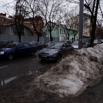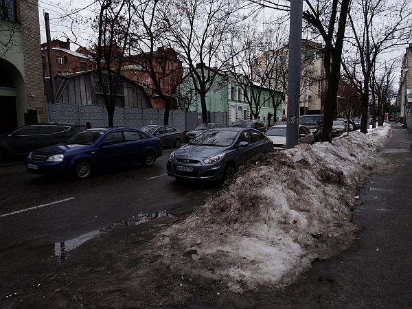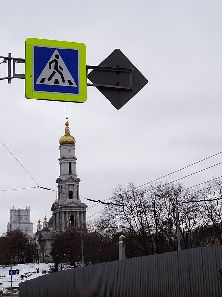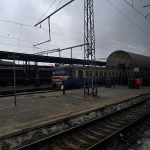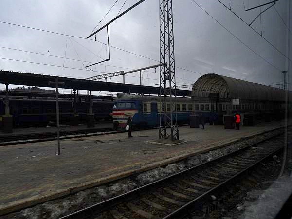 Der über Nacht gefallene Neuschnee liegt wie Puderzucker über den Wegen, hie und da führt jemand einen Hund aus, rollen Autos über den breiten Boulevard. Der längste Teil des Weges ist simpel, es geht immer geradeaus, bis ich nach zwanzig Minuten an eine große Straße komme, die ich zu überqueren habe. Kurz denke ich, das große Gebäude gegenüber könnte der Bahnhof sein, aber dies wäre unwahrscheinlich. Und er ist es auch nicht. Aber ein klarer Weg erschließt sich mir meinem Blick nicht, so werfe ich das Navi an und folge der Route, die mich durch eine kleine, vermatschte und dunkle Gasse führt. Ich werde unsicher, aber die Erinnerung an die Karte sagt, die Richtung könnte stimmen. An einer Straßenbahnstation vorbei marschierend nähere ich mich dem angezeigten Ziel – und nach wenigen Minuten bin ich sicher: Ich bin hier richtig. Schon an der Straßenbahn herrschte ein emsiges Treiben. Jetzt heißt es nur noch den Haupteingang finden und nicht in die Metrostation Vokzalna laufen, die wenige Meter davon entfernt die morgendlichen Fahrgäste verschluckt.