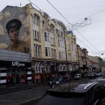 Das Essen kommt, die Suppe ist prima, das Bier auch und auch die etwas später kommenden Pelmeni – als ich den Laden verlasse, bin ich pappsatt. Um die 100 Gwirna habe ich bezahlt, keine drei Euro. Ich lege noch etwas drauf und denke mir: Hier komme ich noch einmal her. Ich sollte Wort halten, soviel sei gesagt. Mittlerweile ist es dunkel geworden, ich wandere nach links, dort in etwa müsste meine Unterkunft sein. Ich passiere Läden, von denen sich mir nicht erschließt, wozu sie gut sind, es ist von außen nicht zu erkennen. In einen spähe ich hinein, hier werden Hemden verkauft, es wirkt wie ein hipper Secondhand Laden in Berlin Anfang 2000. Aber Hipster halten sich hier in Grenzen, hier kaufen die, die hier leben. Keine 10 Minuten später bin ich wieder am Hotel, öffne die Tore, erst eins, dann zwei, dann drei und alsbald ruhe ich mich auf meinem Bett aus. Kiew hat mich umschlungen, Charkiw musst du dir erarbeiten. Abseits der großen Straße wirkt es unübersichtlich, rau, matschig, vereist, feucht. Und ich bin hier im Zentrum. Wie mag es wohl jenseits des Boulevards, der prächtigen Kirchen und mächtigen Plätze aussehen? Der Marsch zum Stadion wird es morgen zeigen.