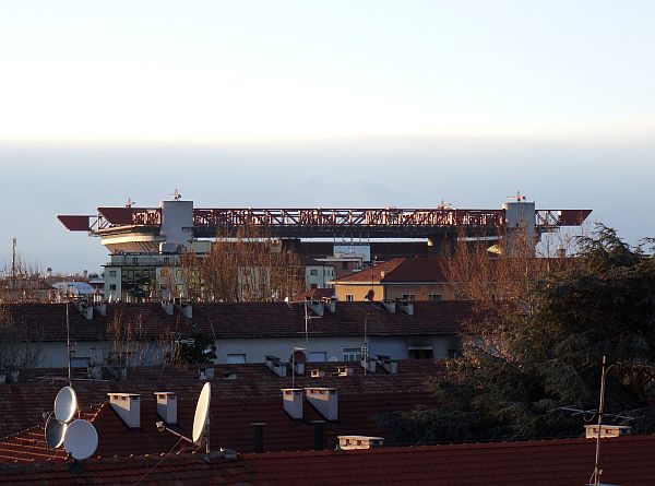 Die Fahrbahn ist jetzt in der Tat tückisch, Eis- und Schneereste machen die Sache nicht einfacher, immerhin: Im 17 Kilometer langen Gotthard Tunnel ist es trocken, stoisch halten wir uns an die Geschwindigkeitsbegrenzungen und irgendwann ist tatsächlich Land in Sicht, mit jedem Meter wird es sonniger, die Abfahrt die Berge hinunter über Bellinzona ist jedesmal der gefühlte Beginn des Urlaubs, die Straßen- und Reklameschilder weisen nun auf Italienisch auf die kommende Grenze hin, die wir auch locker passieren. Keine Stunde noch und wir rollen in Mailand ein, finden auch unsere Straße, das Viertel liegt am Rande des Zentrums, die Häuser wirken etwas heruntergekommen – aber nachdem Gerry, unser Gastgeber, uns die Schlüssel für unser Zimmer gegeben hat und wir mit dem Aufzug in die sechste Etage des Wohnhauses fahren, die Tür aufschließen und vom kleinen Balkon aus das Giuseppe-Meazza-Stadion vor dem Bergpanorama erblicken, sind wir völlig zufrieden, zumal unsere Unterkunft hübsch und sauber ist. Buona Sera Milano. Oder: Hurra, hurra, die Frankfurter sind da. Der Dacia parkt derweil am Straßenrand, Gerry meinte zwar, dies sei kein Problem – aber so ganz wohl ist mir bei dem Gedanken nicht, zumal Schilder etwas von „Abschleppen“ flüstern. Aber was soll’s, wir lassen ihn erst einmal dort stehen. Und machen uns auf in die anbrechende Dunkelheit und in die Stadt. Wirklich warm ist es nicht, und es pfeift auch ein ordentlicher Wind, aber es fällt auch kein Schnee.