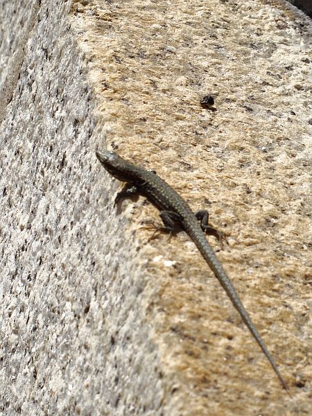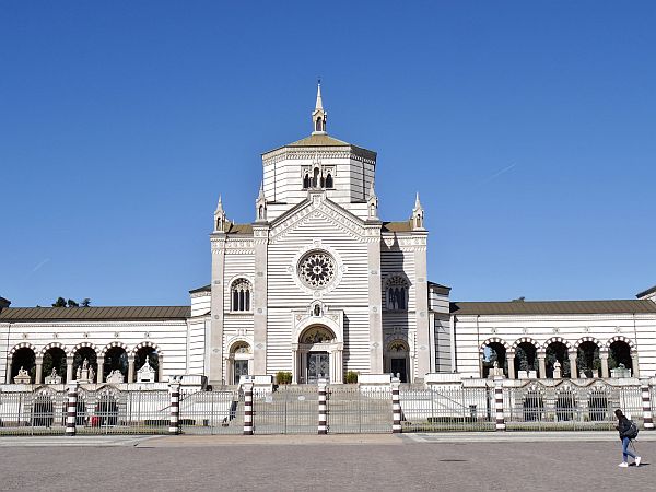 Wir aber wandern durch Chinatown hin zum monumentalem Friedhof, unterwegs gibt es ein Panini in der Sonne, Straßenbahnen rumpeln vorbei, geschäftig ist hier vieles – aber Mailand umschlingt dich nicht, du verliebst dich nicht in diese Stadt wie vielleicht in Porto oder London. Mailand ist stolz und selbstverständlich – und wer Geld hat, kann hier sicher gut leben. Die andere Seite verweist auf die vielen Bettler, meist Schwarze, die recht häufig den Kontakt suchen – und sicherlich ebenso häufig ignoriert werden. Sie werden sicher nicht auf dem Cimitero Monumentale ihre letzte Ruhe finden, auf diesem Friedhof für die Berühmten, Reichen und Mächtigen. In den Galeriearmen am Eingang findest du hier die letzten Ruhestätten von Giuseppe Meazza oder von Dario Fo, auf dem Friedhof selbst reihen sich monumentale Grabstätten dicht an dicht, Inschriften zeugen von vergangenem Leben, Kinder sind hier genauso beerdigt, wie ganze Familien, es ist bei aller Stille hier zuweilen ein lautes Gedenken. Wir sitzen später draußen am Eingang auf einer Treppe in der Sonne und mit uns eine ganze Menge Eidechsen, die mit zunehmender Dauer immer näher kommen. Getrennt in den Farben, vereint in der Sache.