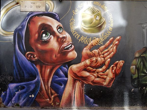 Auf den breiten Alleen sausen die Autos umeinand, aber sie fahren anders als in Rom eher gesittet, als Fußgänger stehen die Überlebenschancen gut. Magnolien blühen, wir passieren die Metro Stationen de Angeli und Wagner, spazieren an der mächtigen Santa Maria delle Grazie Kirche vorbei, die das Abendmahl von Leonardo da Vinci beherbergt und schlendern langsam runter bis zum gigantischen Dom, der auch in der Nacht durchaus imposant wirkt. Nebenan warten die Läden der pompösen Einkaufsgallerie Vittorio Emanuele II mit ihren Glasdächern und verzierten Böden auf Kundschaft, ob Motta oder Prada, Armani oder Versace, Gucci und Louis Vuitton, sie sind alle hier vertreten – und sie repräsentieren alle nicht unsere Welt.