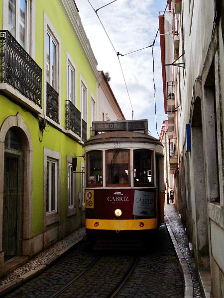 Es ist noch keine zehn Uhr, als wir uns ins Leben stürzen, irritiert nur durch die klatschnassen Straßen. Es muss gerade geregnet haben, kuschlig warm ist es auch nicht, aber mittlerweile wieder trocken. Unten am Platz Martim Moniz fährt die E28 los, diese alte Bahn, die durch die Alfama über Bairro Alto bis zum Friedhof Praceres rasselt. Aber die Schlangen an der Haltestelle sind nichts für uns, also laufen wir los, hoch Richtung Castelo de Sao Jorge, wandern an der Festungsmauer Stück für Stück nach oben. Ein winziges Café lacht uns an, hier gibt es frische Pasteis de Nata, Galao und Rissois de Camarao. Ein älteres Ehepaar, klein gewachsen, wie so viele Portugiesen, betreibt diese kleine Nische mit unvergleichlicher Würde, unserer Reise hat einen ersten kleinen Höhepunkt.