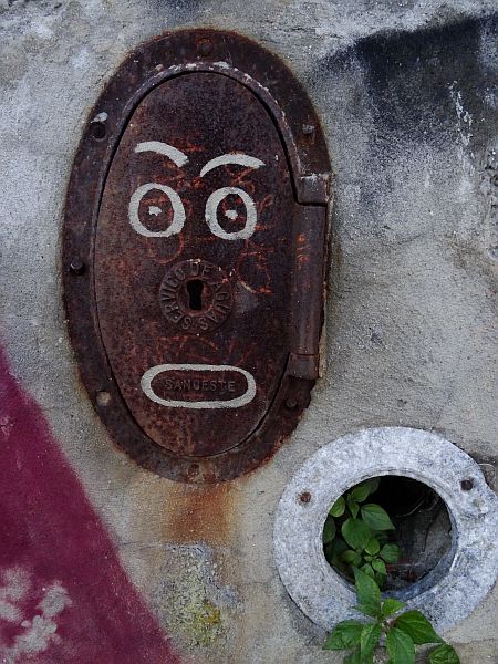 Zurück geht es wieder zu Fuß, wieder in die kleine Stadt, wieder in ein kleines Restaurant, welches aber den Erwartungen nicht wirklich entspricht, es war bestenfalls okay, aber was soll’s, wir sind satt und marschieren wieder runter zum Café am Tejo. Jetzt sitzen hier ein paar Leutchen, die Küche hat geöffnet – wir aber sind nicht mehr hungrig, denken, dass wir wir irgendwann einmal wieder kommen werden und wandern zurück an Ruinen und Graffitis vorbei zur Fähre. Dort treffen wir Michael, der hier in Almada unter gekommen ist und der mit uns übersetzt. Am Cais do Sodré trennen sich unsere Wege, wir nehmen die grüne Metro-Linie und fahren bis zur Endstation Telheiras, nicht weit weg vom Stadion von Sporing Lissabon. Hier trifft das alte Vorort Lissabon auf moderne Wohnungen, hier scheint die Sonne – aber die Gegend lädt nicht zu längerem Verweilen ein, gleichwohl ist es interessant. Ein Weg an modernisierten alten Häusern vorbei wirkt wie ausgestorben, einzig die Augen der Kameras in den Haustüren scheinen dich zu beobachten, ein Niemand ist auf der Straße. Weiter hinten an der Metrostation liegen einige Gärten und gleich darauf wachsen moderne Siedlungsbauten in die Höhe, man hätte früher Plattenbauten gesagt, doch diese hier sind nicht ärmlich, sie wirken auf eine seltsame Art vornehm. Und gleich dahinter ragen die grünen Masten des Stadions in die Höhe. Wir lassen uns auf einer Parkbank die Sonne ins Gesicht scheinen und fahren nach einer Weile zurück in die Stadt. Dort rattern wir mit der besprühten Standseilbahn hoch in die Bairro Alto und sind wieder im Gewimmel. Eine junge Frau im traditionellen Kostüm schenkt an eine Reisegruppe Kirschlikör aus, wir wandern durch Gassen und Gässchen, bis wir wieder beinahe am Fluss sind. Etwas oberhalb treffen wir an einem belebtem Platz auf Maj, Jasmin und Dennis, die beim Schöppchen sitzen und bei der Gelegenheit bleiben wir natürlich auch stehen, quatschen und freuen uns, das wir da sind.