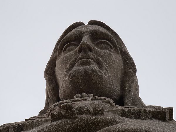 Weiter hinten bringt dich ein Aufzug hoch in die Stadt Almada. Von dort führt ein Fußweg zur Christus Statue, vorbei an einigen Tavernen und Kindergärten, an parkenden Autos und unaufgeregtem Alltagsleben. Es geht ordentlich nach oben – Busse überholen uns, welche die Neugierigen direkt vom Kai hier her bringen, wir aber marschieren noch durch einen kleinen Park bis wir die gigantische Statue erreichen. Ein Wind weht uns fast vom Stengel, unten rauscht der Verkehr über die Brücke, während uns ein weitere Aufzug innerhalb der Statue für fünf Euro nach oben bringt. Jesus breitet seine Hände aus, wir stehen winzig klein zu seinen Füßen und blicken über den Tejo nach Lissabon. Wie oft schon habe ich diese Figur gesehen, so nah aber war ich ihr noch nie.