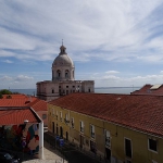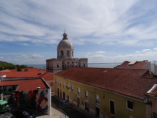 Wir aber wandern hoch zum Platz des Flohmarktes, doch heute parken hier Autos, der Markt findet nur dienstags und samstags statt, die Schlösser müssen warten. Wir pausieren oben im Park und spazieren dann an der Kathedrale Sao Vicenze vorbei, durch eine geöffnete Tür landen wir an einem Vorplatz mit einem fantastischen Blick über die Alfama, linker Hand streckt sich die 17 Kilometer lange Brücke Vasco da Gama über den Tejo, vor uns lachen uns die Kreuzfahrtschiffe aus. Die Sonne lacht gleichfalls und so sitzen wir hier und lassen Blick wie Gedanken schweifen – bis uns der Hunger wieder in die Parreirinha do Paraiso treibt, die wir jedoch finden müssen. Die Häuser bedeckt mit den vielen Azulejos, den bemalten Fliesen, an den Ecken die schmiedeeisernen Straßenlampen, in allen Ecken und Eckchen stehen kleine Tische mit Stühlen, man lässt es sich gut gehen, unten an der Treppe spielt jemand Gitarre, wir lauschen ein paar Minuten und landen wenige Schritte sweiter tatsächlich wieder in der kleinen Gaststätte – und werden wieder nicht enttäuscht. Man könnte verweilen, wie auch zuvor schon oben an der Kirche mit Blick über die Dächer, doch lässt sich die Zeit nicht einfrieren, so sehr wir es auch versuchen.