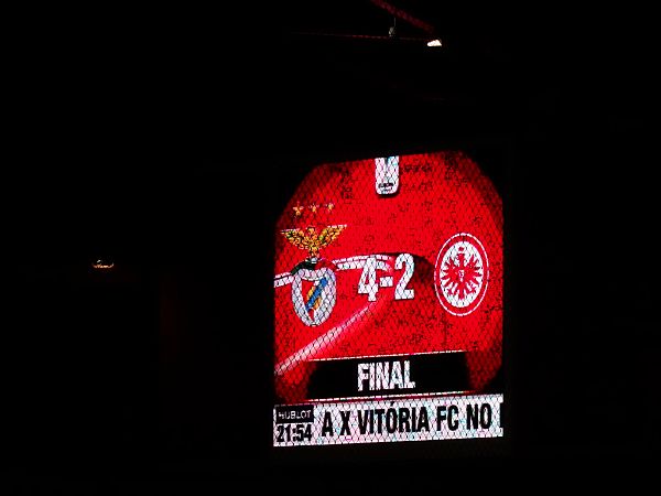 Direkt nach Wiederbeginn wird es bitter, erst das 3:1 durch Ruben Dias, dann das 4:1, erneut durch Joao Felix, der Stadionsprecher brüllt die Namen der Torschützen gleich fünf Mal ins weite Rund. Die ersten nehmen gedanklich Abschied von der Europaleague, es sieht kurzzeitig nach einem Debakel aus. Doch die Eintracht findet trotz 1:4 Rückstand und einem Mann weniger zurück ins Spiel – und Paciencia ist es, der tatsächlich das zweite Tor für die Eintracht erzielt, wir sind zurück im Spiel und im Wettbewerb. Ein wichtiges Tor – und nun hat Benfica die Hosen voll, die Eintracht ist dem dritten Treffer näher, als Lissabon dem fünften. Die Hoffnung lebt. Zumal der eingewechselte Haris Seferovic, der einst bei der Eintracht war, nun wie bekannt nicht wirklich Angst und Schrecken verbreitet. Möge dies im Rückspiel so bleiben, die Zuversicht ist zurück. Kostic hat noch einen Treffer auf dem Schlappen, doch der Ball geht über das Tor, es bleibt beim 2:4.