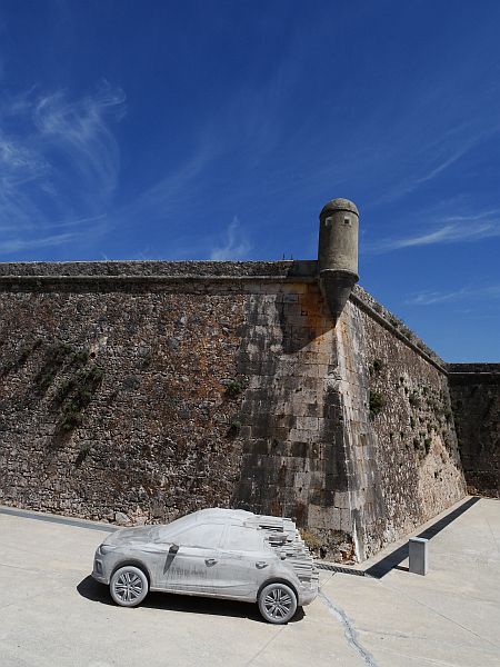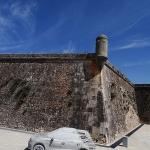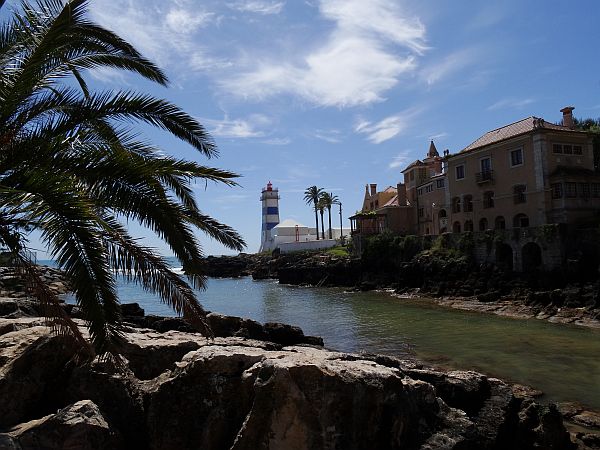 Wir umrunden das Fortaleza da Nossa Senhora da Luz, marschieren einen kleinen Weg zwischen Felsen nach unten, ein Ausläufer führt Wasser in Landesinnere, gegenüber glänzt der blau-weiße Leuchtturm in die Sonne und wir bleiben sitzen und lassen uns die Sommersonne auf die Nase scheinen, bis ein Sonnenbrand droht, derweil sich eine Familie um uns scharrt und der festen Ansicht ist, sie sei alleine auf der Welt.