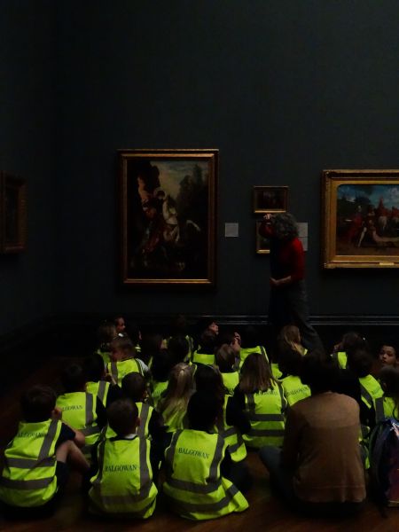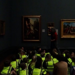 Zunächst aber steht uns ein ganzer Tag zur freien Verfügung, hallo London, hier sind wir. Und der Regen so: Hallo, ich auch. Es schüttet. So nehmen wir nach einem kleinen Frühstück den 90er Bus von Royal Crescent Richtung Piccadilly. Die Scheiben sind beschlagen als wir Notting Hill und den Hyde Park passieren, die Leuchtreklame am Piccadilly Circus spiegelt sich in den regennassen Straßen, die roten Doppeldecker rollen vorbei, Passanten hasten vorüber, während wir uns im Lillywhites umgucken. Wenn du Sportschuhe brauchst, hier findest du sie. Und so ist es, Pia findet immer etwas – und da es immer noch regnet, beschließen wir, einen kleinen Ausflug in die National Gallery zu machen. Das ist der Vorteil Londons, wenn es regnet kannst du immer in die großen Museen gehen, ob Tate, Modern Tate, British Museum oder National Gallery – der Eintritt ist frei und es lohnt sich. Zielstrebig suchen wir die Räume des 19. Jahrhunderts auf, Turner, Friedrich, Monet. Eine Schulklasse in gelben Warnwesten sitzt auf dem Weg im Schneidersitz vor einem großen Gemälde von Luca Giordano, im Mittelpunkt der abgeschlagene Kopf der Medusa. Die Lehrerin erklärt unterhaltsam. Später treffen wir sie wieder vor einem Gemälde, in dem ein Drache getötet wird. Ein kleines bisschen Horrorshow für die Kleinen. So wichtig.