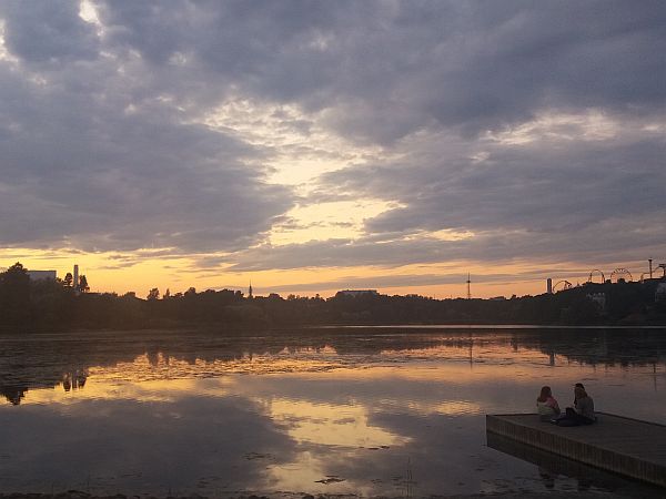 Auf einer Brücke beobachte ich die hier spät untergehende Sonne, welche den See wie schon gestern freundlich glitzern lässt, Diamanten auf dem Wasser sozusagen. Dann geht’s heim, ich packe meine Habseligkeiten zusammen, stelle den Wecker und überprüfe ihn drei Mal, lese noch ein bisschen im Reiseführer, aus der kleinen Box klingen Gogol Bordello oder Levin goes Lightly und alsbald schlummer ich zur letzten Nacht in Helsinki ein. Morgen geht’s weiter nach Tallinn, morgen spielt die Eintracht im Europacup.