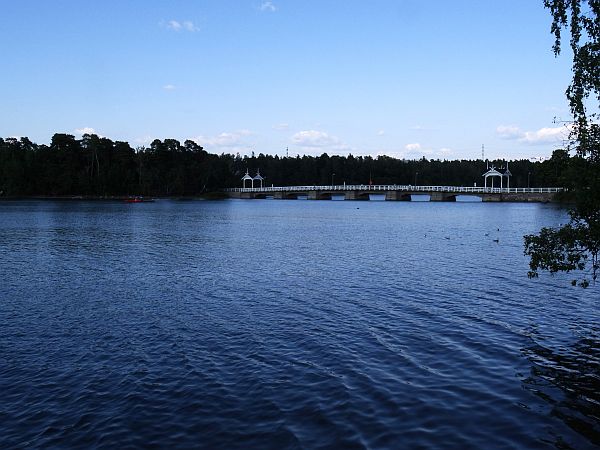So spaziere ich zurück zur Brücke, ein Bus, der zurück in die Stadt fährt, wartet schon – doch ob eines Defektes fällt er aus. Immerhin: Nur wenig später kommt ein nächster und nimmt uns mit, hinter dem Sibeliuspark steige ich aus, merke meine Beine und nach einem kurzen Umweg über den Supermarkt lande ich wieder in der Unterkunft. Eigentlich wollte ich am jetzt beginnende Abend noch einmal an die Küste hinter dem Park spazieren, aber ich traue meinem leichten Beinschmerz nicht. Ergo besorge ich mir noch eine Salbe und breche mit ein paar Dosen Bier in der Tasche auf Richtung Töölön See. Der ist nahe der Unterkunft, falls ich Probleme bekomme, wird der Weg überschaubar sein. Auf eine Treppe in einer Art offenen Bühne setze ich mich hin, blicke auf den See, nebenan hocken ein paar Jugendliche bei Dosenbier und leiser Musik, sie lachen und haben das Leben noch vor sich und spielen später Hacky-Sack. Die Salbe wirkt und so umrunde ich wie schon gestern den See, gehe wieder nicht in das schöne Café, in das mich Pia mit Sicherheit und Recht hinein gezogen hätte. Das ist echt so ein Problem, es ist für mich jedesmal ein Kampf, alleine in ein Restaurant oder Café zu gehen, meistens verzichte ich darauf – es sei denn, es gibt einen ganz krassen Sog, so dass ich keine Wahl habe. Aber wenn ich eine Wahl habe, dann zweifle ich, überlege hin und her – und lasse es meistens bleiben, was dämlich ist, weil meistens habe ich dann Hunger oder Durst und verpasse zudem schöne Plätze. Völlig bescheuert, aber so ist es und so war es auch schon immer.