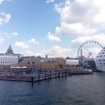 Vorbei am Bahnhof geht es die belebte Mannerheimintie nach unten Richtung Wasser. E-Scooter sausen an mir vorüber, breite, belebte Straßen führen mich direkt an die Küste des finnischen Meerbusens, die Preisschilder und Speisekarten auf dem Weg zeigen, dass Helsinki kein billiges Pflaster sein wird. Ein Bier für 8,50 – Prost Mahlzeit. Unten am Wasser fällt der Blick auf unzählige Inseln, dazwischen tuckern Bootchen jeglicher Couleur – von großen Fähren bis zu kleinen Segelbooten ist alles dabei. Menschen sitzen in den Cafés und ich treibe die Küste entlang bis hin zum alten Olympia Terminal. Heinz Ulzheimer hat ja hier in Helsinki die erste olympische Medaille nach dem Krieg für die Eintracht geholt, damals, 1952.