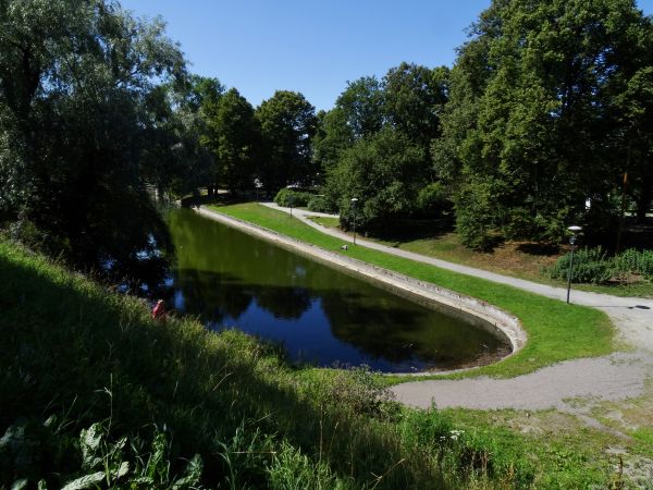 Am Hafen vorbei schlendernd, über eine viel befahrene Hauptstraße spazierend erreiche ich die Stadtmauern der mittelalterlichen Unterstadt und finde auch nach einigem hin und her einen Durchgang. Und kaum bin ich in der Altstadt, trifft mich der Schlag. Durch die wunderbaren Gassen mit den barocken Häusern schieben sich Menschenmassen, der Klang des Rollkoffers ist allgegenwärtig. Nach der beschaulichen Ruhe Helsinkis, den eher stillen Inseln, bin ich dezent überfordert. Ich entdecke meine Kollegin Maj in einem Restaurant, die mit ihrer Freundin Yasmin schon seit gestern hier ist, wir verabreden uns für später und ich schiebe mich weiter durch die Gassen. Tausende sitzen in den Cafés, in den Restaurants – und trotz der auffälligen Schönheit der Straßen und Häuschen, brauche ich sofort: Ruhe. Und ein Bier. An der Kreuzung Lai/Nunne finde ich ein Kiosk, hole mir ein Bier und setze mich nebenan auf ein Mäuerchen, hinter mir rieselt ein kleiner Wasserfall, ein lauschiges Plätzchen zum beobachten will mir scheinen. Bis Feuerwehrautos kommen und in die kleine Straße abbiegen wollen – was allerdings nicht gelingt, da PKWs zu eng parken. Ein nächstes Feuerwehrauto kommt, dahinter versuchen andere PKWs zu überholen – was natürlich nicht geht. Binnen kurzem wurde aus meinem lauschigen Plätzchen ein turbulenter Hotspot. Feuerwehrleute in schweren Uniformen verzweifeln am Verhalten der übrigen Verkehrsteilnehmer, die statt zu warten, gegen die Einbahnstraße fahren, bewahren gleichermaßen die Ruhe – und zu allem Überfluss schiebt sich auch noch ein Touristenbähnchen mit etlichen Anhängern auf die kleine Kreuzung. Touristen stehen hastig vom Essen auf, bereit alles zu filmen, was sich nicht schnell genug fortbewegt, man möchte ihnen die Handys aus der Hand schlagen. Bevor meine Laune völlig kippt, hole ich mir noch ein Bier und laufe runter, bis ich wieder außerhalb der Stadtmauern bin. Dort wächst ein Park in die Höhe, ein Weiher im Grün glänzt in die Sonne und ich suche mir ein einsames schattiges Plätzchen und genieße die Stille. Und sammle Kraft für ein erneutes Einsteigen in den Trubel, den man erst einmal verkraften muss.