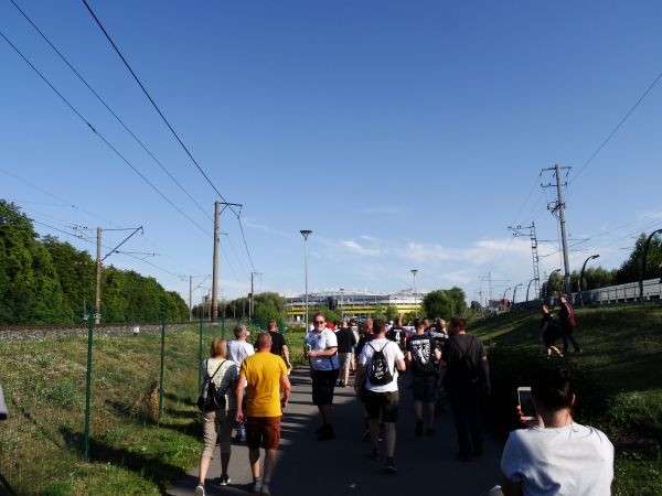 Natürlich überall bekannte Gesichter, hier ist Basti vom Fanprojekt, dort die Pappnasen vom Fußball 2000, hier ist Susi, dort Helga, da Matze und auch Flo hat’s noch gepackt. Wir wandern entspannt durch die Stadt zum Stadion, werden völlig in Ruhe gelassen, babbeln und freuen uns auf das bevorstehende Spiel. Am Stadion selbst muss ich noch meine Karte abholen, Moni, Ina und Ingo sitzen in kleinen blauen Zeltchen und haben alle Hände voll zu tun – obwohl die Schlange überschaubar ist. Ich bin einer der letzten, der seine Karte bekommt, dabei wollte ich mich eigentlich beeilen. Ich bedanke mich herzlich und schon stehe ich in einer weiteren Schlange zum Einlass, der flott und einfach von statten geht. Irgend jemand drückt mir ein Bier in die Hand, das mir prompt aus den Fingern glitscht und nach unten saust. Irgend jemand schimpft jetzt natürlich, das tut mir leid – aber es war ja keine Absicht. Ich laufe nach unten, treffe wieder auf Maj und Yasmin, bekomme ein neues Bier, Helga ist auch hier – Henning kommt, die Zeit vergeht wie im Rausch, überall Lachen und fröhliches Gebabbel. Leider habe ich Arne nicht mehr entdeckt, den ich eigentlich noch treffen wollte.
