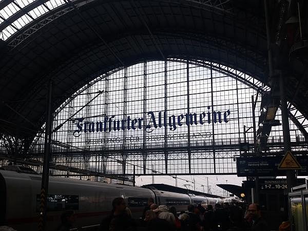 Nach einem üppigem Frühstück bringt uns ein Taxi über die Alster wieder zurück an den Bahnhof, die Bahnsteige sind eng, Rollkoffer drängeln, der Zug hat ein paar Minuten Verspätung. Wir sitzen jetzt in einem Abteil, Henning ist noch nicht wirklich fitt, Kathrin nimmt einen Zug später, andere Mitreisende sitzen bei uns. Und so rollen wir wieder zurück, der Halt in Hannover ist zu kurz für eine Zigarette, das W-Lan wacklig, am Fenster sitzt jemand anderes – über die Kopfhörer pluckern Heather Nova und Nick Cave, ich blätter im Hamburger Abendblatt von gestern, ein Blatt genau so konservativ und reaktionär wie die hiesige SPD, deren Bürgermeister Olaf Scholz und einem Innensenator Grote unter dessen Ägide hier für Recht und Unordnung gesorgt wird. Draußen an der Elbe ist’s schön. Jetzt passieren wir Gelnhausen, überqueren den Main und landen nahezu pünktlich am Frankfurter Hauptbahnhof. Dort verabschieden wir uns von Henning, nehmen die U4 zur Konsti, dann die 18 zur Friedberger, ein paar Schritte noch und wir sind wieder zuhause. Hurra, hurra, zwei Frankfurter sind da.