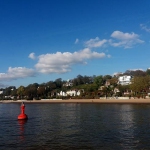 Die Nacht war kurz und traumlos, das Frühstück reichhaltig – nur Henning ist angeschlagen, er hat es schon bei Union Berlin nicht ins Stadion geschafft, auch heute stehen die Sterne eher ungünstig. Pia und ich treiben über die Reeperbahn, laufen runter zu den Landungsbrücken, an der Elbe weht ein Wind, ich kaufe mir ein Tuch für den Hals, ehe wir die Hafenfähre 62 entern und über die Elbe schippern. Das Oberdeck ist voll, Kindergruppen sind unterwegs, Hamburger Rapper mit Hamburger Rapper Hunden, Touristen. Vorbei gehts am Fischmarkt, an Övelgönne und den Elbstränden bis Finkenwerder und retour. Ein blauer Sonnenhimmel beleuchtet uns, ein gigantisches Containerschiff zieht vorbei. In Altona verlassen wir das Boot, wandern über den alten Elbtunnel auf die gegenüberliegende Seite, sind froh, dass es im Tunnel nicht tropft und marschieren vor zum Aussichtspunkt. Hier hast du einen wunderbaren Blick auf Hamburgs Skyline, rechter Hand die ElPhi, geradeaus der Michel und das Bismarck-Denkmal. Die Fähre „Wolfgang Borchert“ zieht zum wiederholten Mal an uns vorbei, wir beobachten die Möwen und die Spatzen, die auf die Krümel der Fischbrötchen warten, die an der Bude frisch zubereitet werden. Pia sortiert derweil die leeren Flaschen in die Bierkästen.