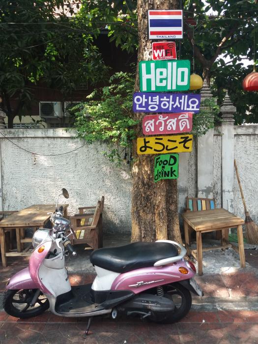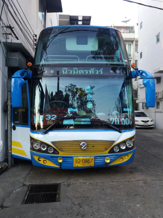 Ben, der die Unterkunft verwaltet, ist schon am werkeln. Wir werfen das Gepäck in den Waschraum, unser Zimmer ist noch nicht bereit, so wandern wir in leichter Kleidung und Flipflops zurück auf die Samsen Road. Ein paar Meter weiter um die Ecke frühstücken wir, Mango, Ananas und Müsli und ein Shake dazu – nachdem Pia erst einmal ein paar Masken besorgt hatte. Noch tragen wir sie nicht. Kaum ein Farrang trägt eine Maske und auch nicht alle Thais – wir sind unsicher. Anschließend laufen wir ein paar Meter weiter und klären die Nachtfahrt für den morgigen Tag nach Ranong. Im 32-Sitzer geht es hier nahe der Khao San Road los, wir bekommen zwei Plätze und mit den Tickets in der Hand geht’s zurück in die Anlage. Die lauten Busse röhren an uns vorbei, die Scooter kennen keine Ampeln, die Essensstände braten und brutzeln, der Alltag scheint seinen normalen Weg zu gehen, die Anzahl der am Virus erkrankten Thais liegt derzeit bei 53 Personen, im 7Eleven ist es wie immer eisig kalt und wir checken ein. Vier Betten stehen im Zimmer, welches wir für uns haben, zwei Ventilatoren summen im Raum ihr Lied, eine eigene Dusche haben wir auch, gleichfalls eine winzige Terrasse. Nur wenige Gäste sind hier.