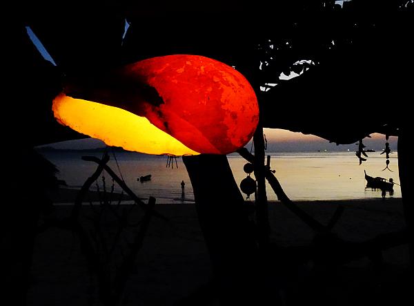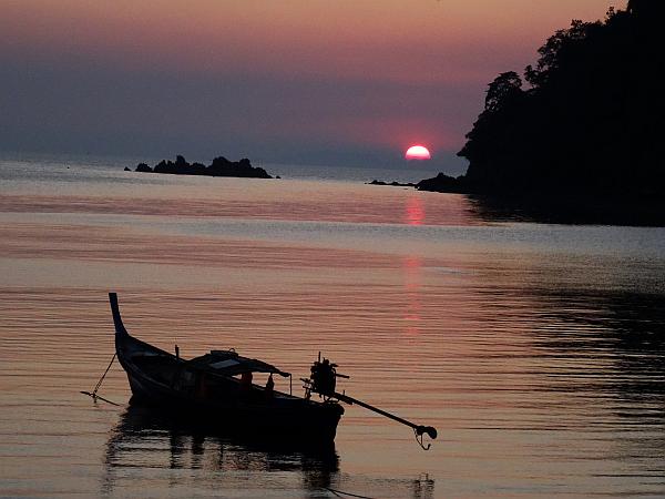 Kamen früher überwiegend Traveller auf die Insel, so wird sie nun immer mehr für Urlauber hergerichtet – und es vergeht allmählich der Geist des spirituellen. Es ist nicht mehr ganz so mühsam, hier her zu kommen, Strukturen werden für Touristen angelegt, die Geschwindigkeit nimmt zu und die Preise steigen. Menschen kommen nicht mehr mit dem Nachtbus, sie fliegen nach Ranong. Apfelschorle auf der Insel? Albern. Ich denke wehmütig an die alten Zeiten zurück, die ich noch erleben durfte, die Einfachheit der alten Hütten als der Komfort das Meeresrauschen, der Sonnenuntergang und der Sternenhimmel war. Jetzt rauscht der Ventilator. Immer noch herrlich. Ich bin froh, dass ich hier bin. Aus der kleinen Box läuft wie immer an jedem Tag A Clowns heart von der Oysterband: