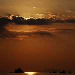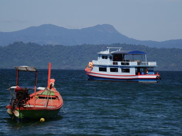Ein Traum sind auch die magischen Sonnenuntergänge. Jeden Abend um 18 Uhr versammeln wir uns auf den Stühlen und blicken aufs Meer. Farb- und Wolkenspiel, mal hast du bizarre Lichtkombinationen, mal versinkt ein Glutball im Wasser. Sobald die Sonne versunken ist, leuchtet die Venus hell am Firmament, beginnen die Zikaden ihr Lied, echot ein Gecko. Pia versucht, den Gecko aufzunehmen, ein mühsames unterfangen. Im Hintergrund zieht eine Armada Fischerboote entlang, das Licht zu hell. Sie sollen Plankton beleuchten – und damit die Tintenfische anlocken.