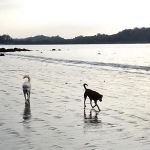 Wenn man sich eine ganze Zeitlang auf dem Gelände aufhält, wird man unweigerlich mit der Tierwelt der Insel konfrontiert. Eine schwarze Katze umschmeichelt unsere Beine, ab und an siehst du einen Gecko. Wenn es in den Bäumen raschelt, kann es sein, dass ein Hornbill mit leuchtend gelbem Schnabel angeflattert kommt, zuweilen kreisen über dem Wasser einige Seeadler. Abends kommen die Moskitos, Grillen zirpen nach dem Sonnenuntergang kollektiv wie auf einen geheimen Befehl hin – und enden ebenso unvermittelt, wie sie begonnen haben. Im Meer tummeln sich kleine Fischlein. Winzige Ameisen räumen noch die letzten Tropfen eines Shakes auf, kleine Krabben rennen zu Tausenden am Strand entlang, ihr Gang ist seitwärts und wenn sie sich einbuddeln, werfen sie Unmengen an kleinen Sandkügelchen auf. Aufpassen musst du im Wasser, vor allem bei Ebbe. Scharfkantige Felsen können dir die Füße zerschneiden und in die dort lebenden Seeigel willst du auch nicht treten. Michi hatte es erwischt, doch Cha wusste Abhilfe – und zertrümmerte die im Fuß steckenden Stachel mit einer Flasche.