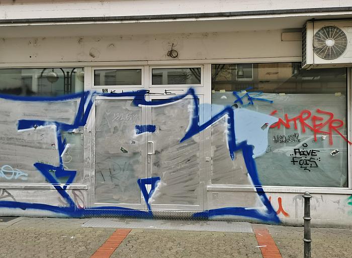 Vor sieben Jahren hatte ich schon einmal einen Beitrag hier im Blog über die Berger Straße, es ging um den zunehmenden Leerstand auf der Straße. Damals hat noch niemand an Corona gedacht. Seinerzeit hatte kurz zuvor Saturn Hansa für immer die Pforten geschlossen, während aberwitzige Mieten dafür sorgten, dass alle paar Meter ein Schild an den matten Fensterscheiben hing: „Zu vermieten“. Daran hat sich bis heute nicht allzuviel verändert. Auch Zigarren Günther hat für immer geschlossen. Dieser Laden, dessen Schaufensterauslage an längst vergessene Zeiten gemahnte, ist nun selbst Erinnerung. Wir marschieren vom Uhrtürmchen bis runter an den Anlagenring und zurück bis zum Solzer. Dabei unterqueren wir die Höhenstraße durch die Unterführung der U-Bahn. Seit einem Jahr bin ich nicht mehr U-Bahn gefahren. Der Geruch erinnert an den Beginn an eine der vielen Reisen, die oftmals mit der Fahrt zum Bahnhof oder Flughafen begonnen haben. Der Sog in die Unterführung ist der Sog in eine andere Welt. Du gehst runter – und steigst an einem anderen Ort wieder aus. U-Bahn Unterführungen, der Geruch des Unterwegsseins. Pia ist mittlerweile ihr Päckchen los geworden. Nicht an einen der Bettler, die das Straßenbild mitprägen, sondern hochoffiziell bei einem Dienstleister.