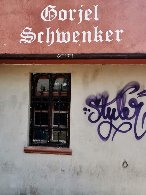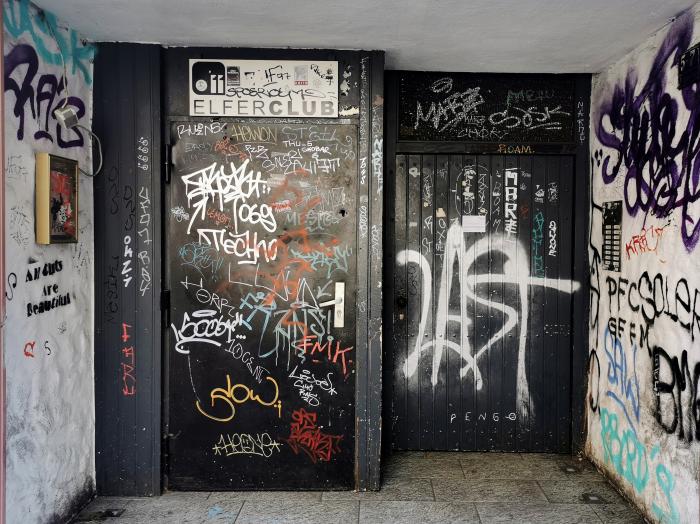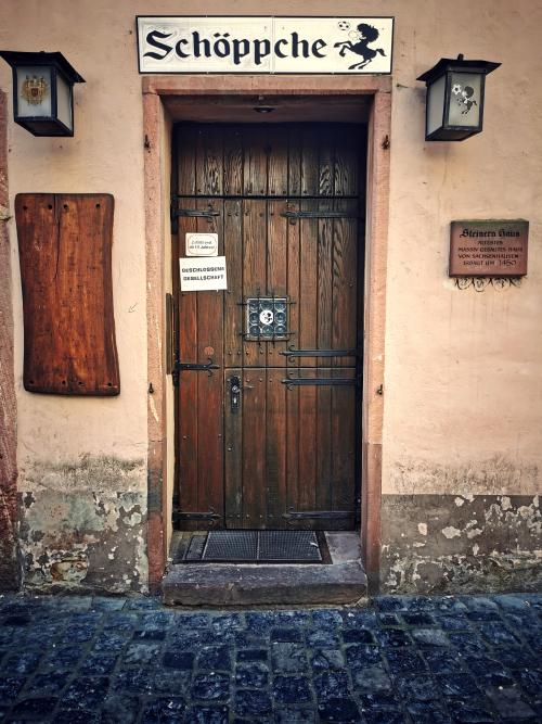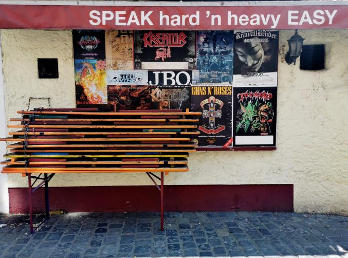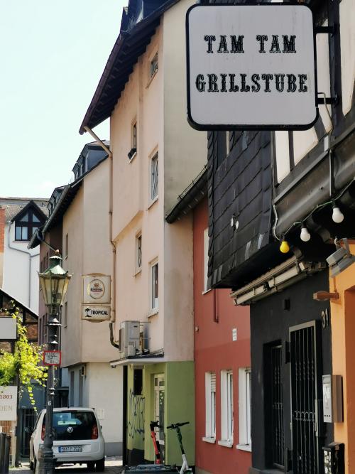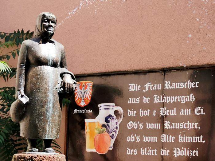 Kurz darauf hocke ich bei einem formidablen Pad Krapao samt einer Cola und blicke rüber nach Alt Sachsenhausen. Wie oft hatte ich dort mit meinem Taxi auf Fahrgäste gewartet, mal am Halteplatz Dreieich, mal auf der anderen Seite an der Elisabethenstraße. Einmal hat mir einer von einer wackligen Gruppe in der Nähe von Gießen ins Auto gekotzt. Nachts an der Tanke Wetterau auf der Autobahn dann die Kiste halbwegs gereinigt. Zuvor hatte ich dem letzten halbwegs Nüchternen an Bord alles an Bargeld abgenommen, was er noch hatte. War trotzdem kein Spaß. Gefeiert habe ich in Alt-Sachs schon lange nicht mehr, lustig waren die Bembelbar-Abende in der Klapper. Doch die sind auch schon lange Geschichte. Aber tagsüber laufe ich zuweilen ganz gerne über die Pflastersteine, viel ist nicht los. Lustigerweise beschleicht mich ein dezentes Urlaubsgefühl. Manchmal klappt es, die eigene Stadt so zu betrachten, wie man eine fremde Stadt betrachtet. Bei Licht gesehen, ein ganz schönes Gefühl. Man sieht ganz andere Dinge. Die kleinen und großen Graffitis, die Eingangstüren der Schuppen, in denen ich zuweilen saß, die Klapper, der Elfer, das Speak Easy, der Ponyhof oder ganz früher der Gorjel Schwenker, der heute nicht mehr den allerbesten Eindruck macht. Im Schöppchen war ich erstaunlicherweise noch nie, dafür aber in einigen Ebbelwoi-Lokalen. Dauth Schneider, Grauer Bock, Lorsbacher Tal, Struwwelpeter und wie sie alle heißen. Jägermeister und „Ficken“ ist in vielen Spelunken im Angebot, das verschachtelte Marco Polo zerfällt augenscheinlich. Eine seltsame Ruhe liegt im Viertel, geöffnet hat der Froschkönig, Sapo Rey – ein Kolumbianer. Vorne am Obernbayern werden Getränke angeliefert, im Bonkers wartet ein junger Mann auf Kundschaft. Skateboards und Turnschuhe gehen heute eher schlecht und die Frau Rauscher spuckt stoisch auf die Klappergass. Nach 10 Versuchen habe ich endlich auch ein bisschen Wasser fotografiert. In der Klappergass oder war es in der Großen Rittergasse wird eine Wohnung vermietet. Ein Zimmer, Küche Bad. 580 Euro. Das Fenster im Erdgeschoss, da kannst du Junggesellenabschieden vom Sofa aus auf die Schulter klopfen. An vielen Kneipen hängen Zettel. Keine Flaschen, Gläser, Waffen und Alkohol auf unseren Straßen. Bin dann doch eher skeptisch, ob das klappt. Hier und da hat eine Agentur ihr Zuhause gefunden, an vielen Türen weisen Klingeln darauf hin, dass tatsächlich Menschen hier wohnen. Tagsüber ein Idyll, nachts hingegen wird es hier eher ungemütlich. Aber satt wirst du auf jeden Fall. Früher gab es hier Rollis, leckere Rollbratenbrötchen. Manchmal sind wir schon nachmittags ins Raffles gefahren. Waren im Spritzehaus zur Live Musik. Einmal war ich sogar an Weihnachten im Speak Easy. Buffo hat uns Heavy Metal um die Ohren geballert. Aber so richtig verliebt war ich nie in Alt-Sachsenhausen. Das Beste war eh der Laden, dessen Namen ich erschreckenderweise schon wieder vergessen habe. Neben Pizza Petro schuftete Luigi am Grill. Fettige Fleischspieße mit Tomaten-Kartoffeln und Knoblauch-Spinat und dazu eine fantastisch scharfe grüne Soße. Manchmal habe ich auch an einer gegrillten Wachtel geknabbert. Lang ist’s her.
