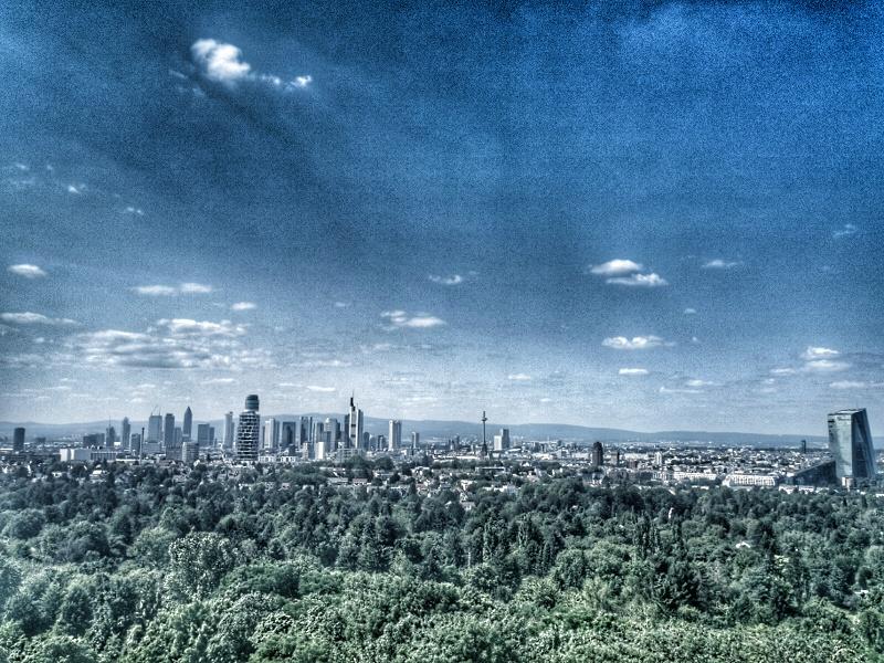 Lustigerweise hatte Lisa getwittert, dass sie tourimäßig oben am Goetheturm verweilt, und da ich gar nicht weit weg davon bin, halte ich es für eine wunderbare Inspiration. Seit dem Brand war ich nie oben gewesen – und so setzt sich der Urlaub in Frankfurt fort. Ich werfe dem Gitarristen einen Euro in seinen Koffer und bedanke mich, er freut sich und nur wenig später liegt Pias Pasteis sicher im Helmfach und ich tucker fröhlich den Hainer Weg hinauf. Statt Henninger Turm gibt es hier jetzt Luxuswohnungen. Dann lieber Portugal.